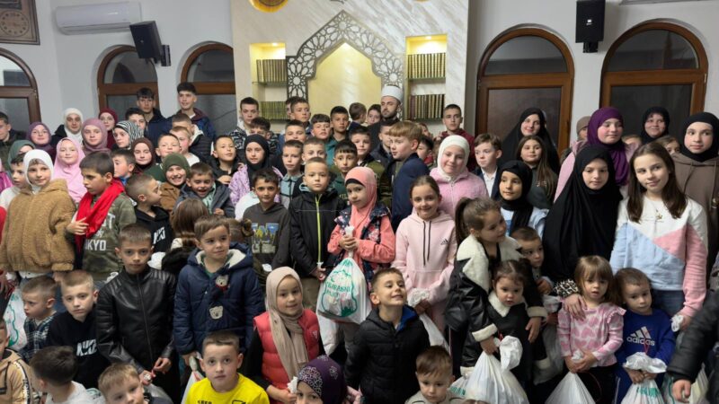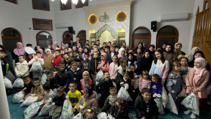 U prepunom prostoru džamije, među osmijesima, dječijim glasovima i toplinom koja se ne može opisati riječima, okupilo se na desetine mališana. U njihovim rukama – skromni paketići. U njihovim očima – radost koja vrijedi više od bilo kakvog dara.