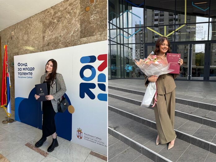 Njena posvećenost nije prošla nezapaženo – dobitnica je Dositejeve nagrade za izuzetne i nadarene studente i državna stipendistkinja. Učestvovala je na brojnim naučnim konferencijama u zemlji i inostranstvu, predstavljajući svoj rad, ali i ime svog grada.