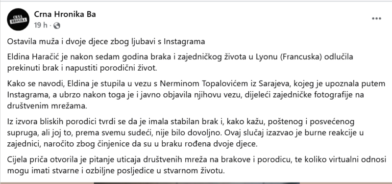 Mnogi su se u komentarima pitali kako je moguće da društvene mreže postanu okidač za ovako ozbiljne porodične lomove. Instagram, kako su pisali, „ulazi u kuće, brakove i glave“, stvarajući iluziju lakšeg i boljeg života, dok stvarni problemi ostaju neriješeni. Upozoravali su da virtuelne emocije često imaju stvarne i teške posljedice – naročito po djecu.