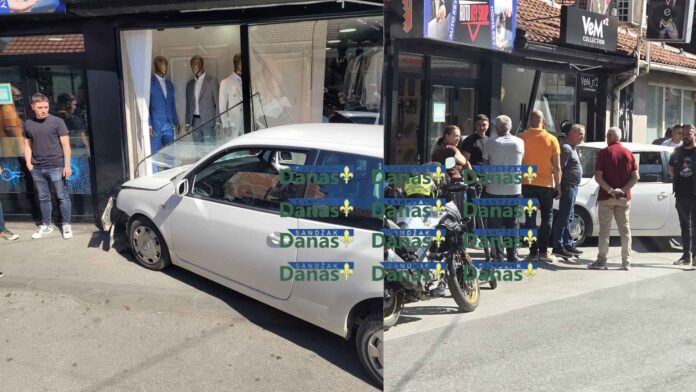 Juče oko 15 časova u ulici AVNOJ-a u Novom Pazaru dogodila se neuobičajena saobraćajna nezgoda kada je putnički automobil marke Volkswagen, pazarskih registarskih oznaka, završio u izlogu jedne radnje.