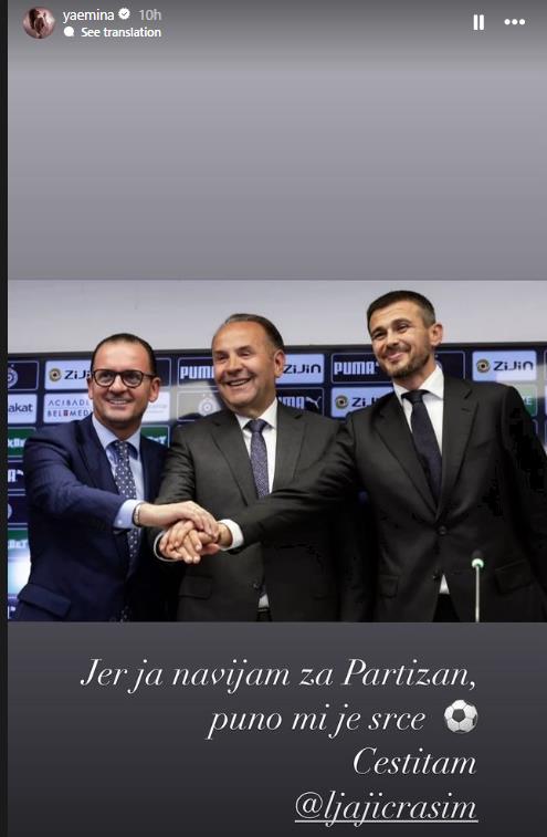 Ova objava nije samo iskaz njene podrške Ljajiću, već i potvrda njene strasti prema FK Partizan, koju je kroz godine često pokazivala na društvenim mrežama. Još 2012. godine, Emina je objavila: