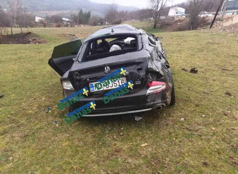 Kako se može vidjeti na fotografijama s mjesta nesreće, vozilo je pretrpjelo ozbiljna oštećenja – razbijena stakla, uništen zadnji dio automobila i tragovi prevrtanja jasno ukazuju na silinu udara.