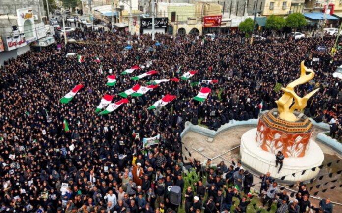 Footage of hundreds of thousands of the proud people of Iran in Minab at the funeral procession for the bodies of 165 elementary school girls who were massacred in the joint US-Israeli attacks pic.twitter.com/wwxvMoavJR