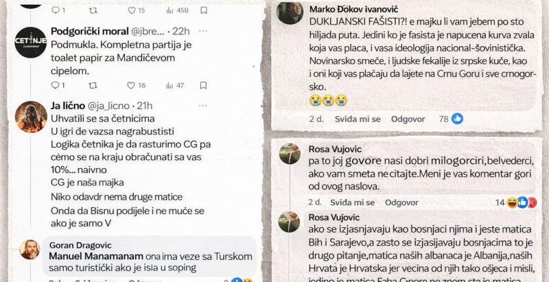 U komentarima koji kruže internetom mogu se pročitati poruke poput: „Ovakve osobe treba pod hitno istjerati iz Crne Gore“, „Idite u svoju maticu“, „Trovacice! Ološu!“ – ali i sofisticiraniji pokušaji delegitimizacije, kroz tvrdnje da se ovakvim izjavama „ruše temelji države“. Ovo, međutim, nije rasprava o teritoriji – već o identitetu.