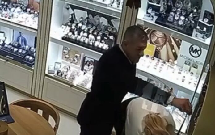 Na snimku nadzorne kamere vidi se kako osumnjičeni muškarac ulazi u zlataru i započinje razgovor s prodavačicom, tražeći da mu pokaže određeni komad nakita iz zaključanog ormarića. U trenutku dok se prodavačica saginje i otvara vitrinu s nižih polica, muškarac koristi priliku i neprimjetno uzima narukvicu s gornje police.