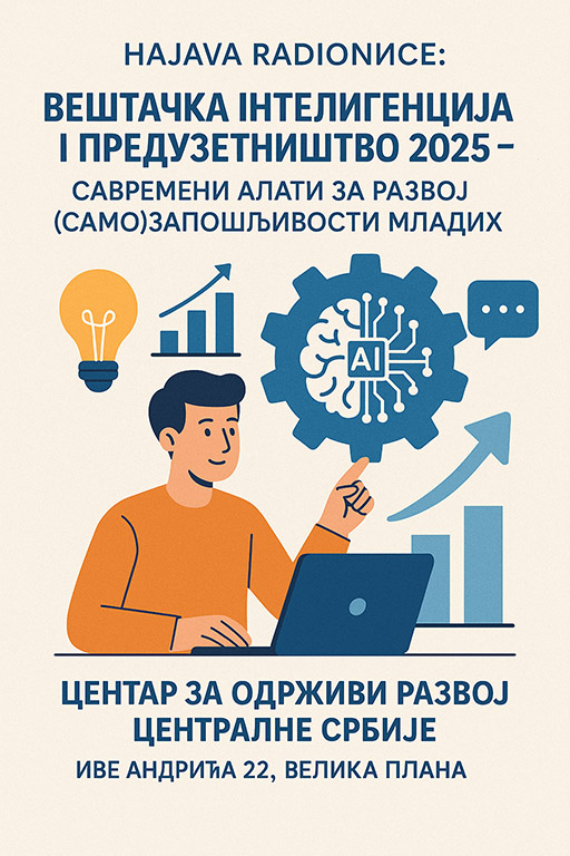 Центар за одрживи развој централне Србије, уз подршку Министарства омладине и спорта, реализује пројекат „Вештачка интелигенција и предузетништво – савремени алати за развој (само)запошљивости младих 2025“.
