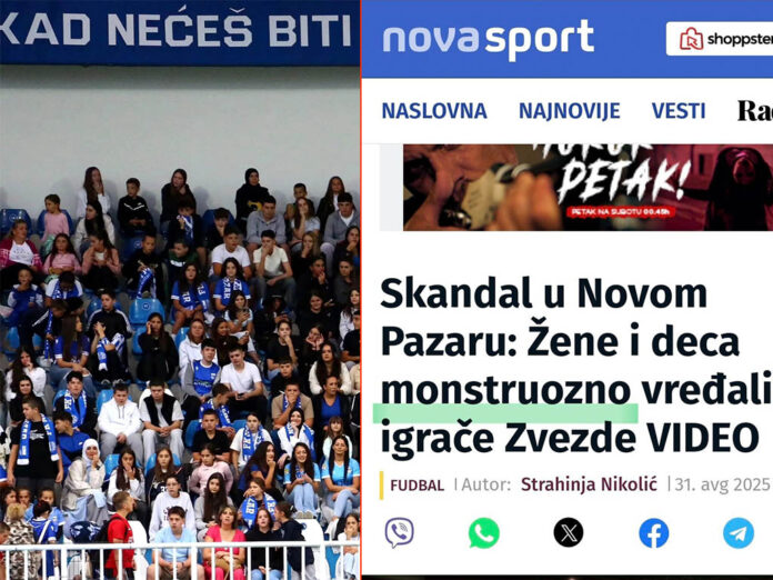 Televizija Nova.rs ponovo je pokazala kako izgleda kada se novinarstvo pretvori u jeftinu propagandu. Pod bombastičnim naslovom – „Skandal u Novom Pazaru: Žene i deca monstruozno vređali igrače Zvezde“ – javnosti je servirana priča koja je od prvog do posljednjeg reda skandalozna, ali ne zbog događaja na stadionu, već zbog načina na koji se medij usudio da izvrne istinu.