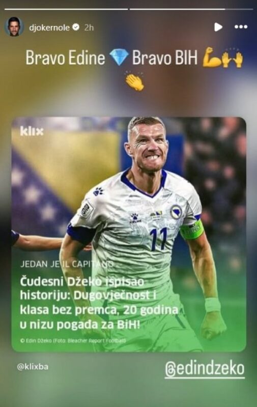 Đoković je i ranije pokazivao simpatije prema reprezentaciji BiH. Nakon velike pobjede nad Velsom, javno je čestitao timu i kapitenu Edin Džeko, dodatno podižući moral ekipe i navijača.