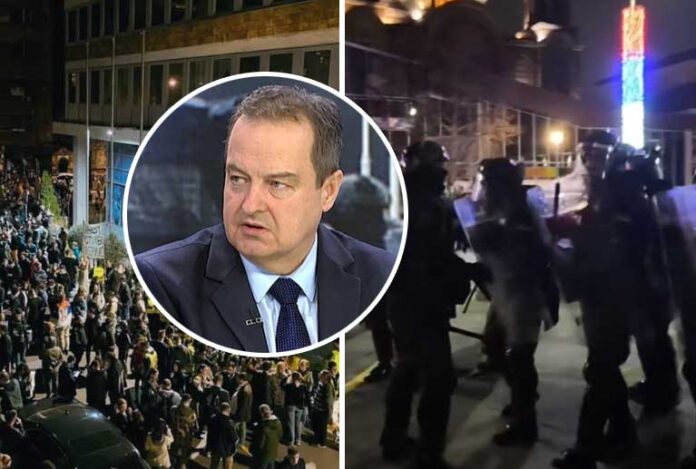 Beograd – Ispred zgrade Radio-televizije Srbije sinoć je došlo do napete situacije između policije i demonstranata koji su blokirali ulaze ove medijske kuće. Ministar unutrašnjih poslova Ivica Dačić oglasio se iz komandnog centra i iznio svoj stav o događajima koji su obilježili protest.