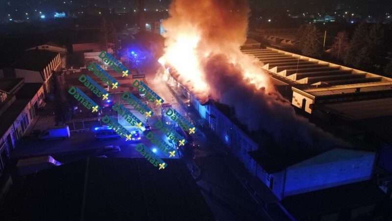 NOVI PAZAR – U ulici Dimitrija Tucovića večeras je izbio ogroman požar koji je zahvatio fabriku i magacine sa repromaterijalom, izazvavši pravu dramu u industrijskoj zoni grada. Gust dim i visoki plameni jezici vidljivi su iz gotovo svih dijelova Novog Pazara.