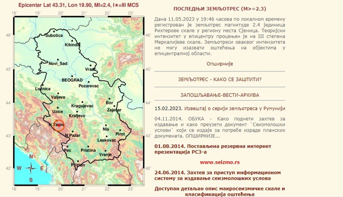 Foto: republički seizmološki zavod / screenshot