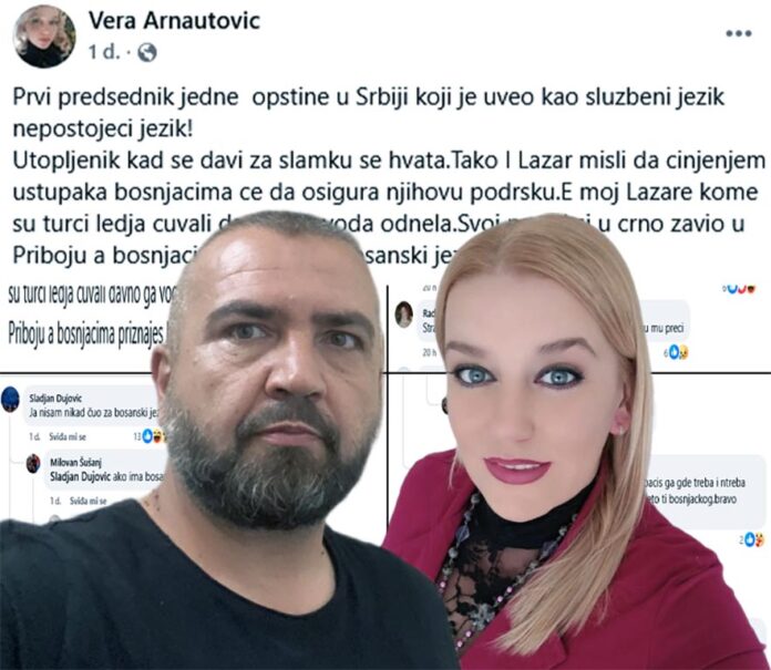 Objava Pribojke Vere Arnautović na društvenim mrežama izazvala je burne reakcije, ali i otvorila niz pitanja – ne samo o govoru mržnje, već i o naglim „ideološkim preobražajima“ koji, čini se, često imaju vrlo ličnu pozadinu. Povod za njen istup bila je odluka predsjednika opštine Priboj Lazara Rvovića da se bosanski jezik uvede u službenu upotrebu, što je u skladu sa zakonima Republike Srbije. Međutim, Arnautović je to iskoristila za otvoreni napad, napisavši: