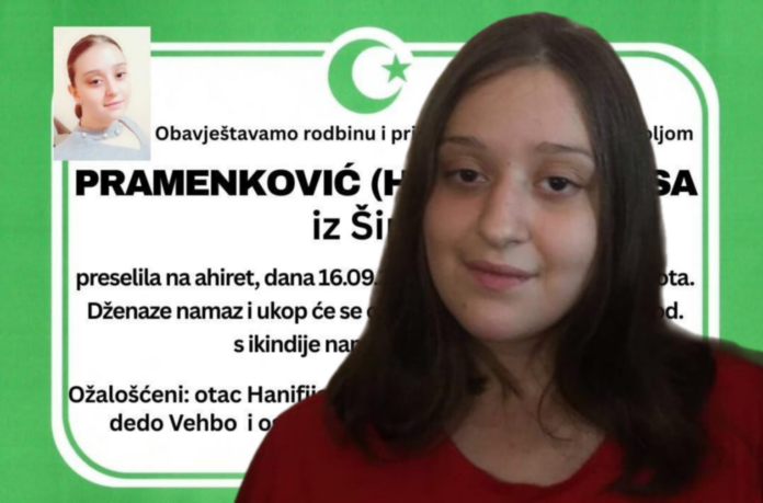 Na smrtovnici stoji da za njom tuguju otac Hanifija, majka Mujesira, sestre Aiša i Hana, dedo Vehbo i brojna rodbina. Ali u suzama nisu ostali sami – cijeli Sandžak plače sa njima.