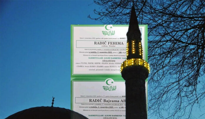 Njihovi smrtovnici, okačeni jedan pored drugog, svjedoče o nečemu rijetko viđenom — o ljubavi koja je trajala do posljednjeg daha. Abaz, sin Bajrama, preminuo je u 77. godini života, a njegova životna saputnica Fehima, rođena Drndar, samo nekoliko sati kasnije u 68. godini. Dženaza oboma se klanjala u nedjelju, 2. novembra 2025. godine, u 14 sati ispred gasulhane u Koritima, a ukop je obavljen na mezarju Staro Selo.