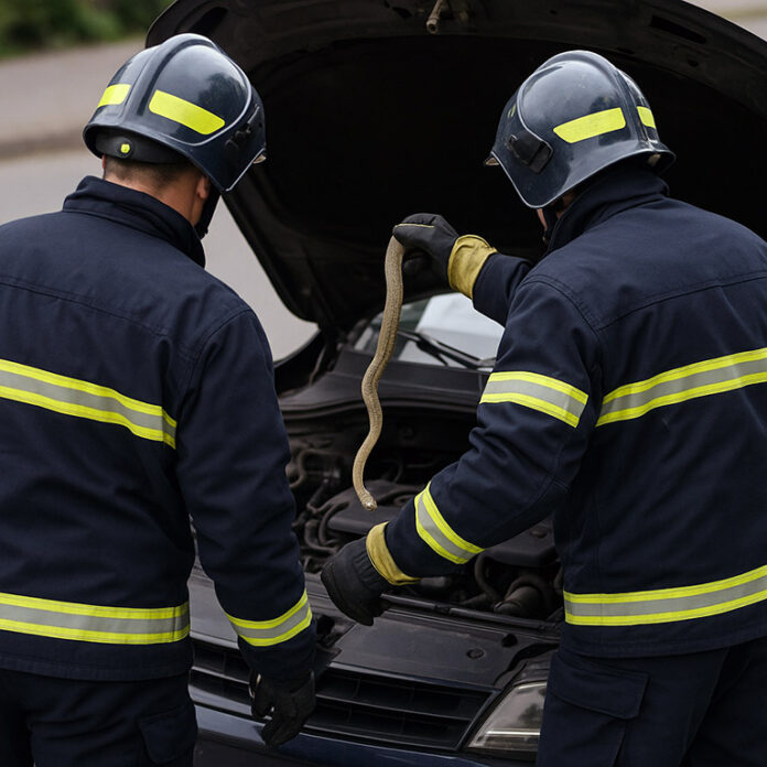 Na poziv Bjelopoljca Nenada Kneževića, koji je prvi primijetio neobičnog “putnika” u svom automobilu, reagovala je Služba zaštite i spašavanja Bijelo Polje. Vatrogasci Nemanja Vojinović i Nikola Jokić brzo su stigli na lice mjesta i profesionalno uklonili zmiju iz vozila.