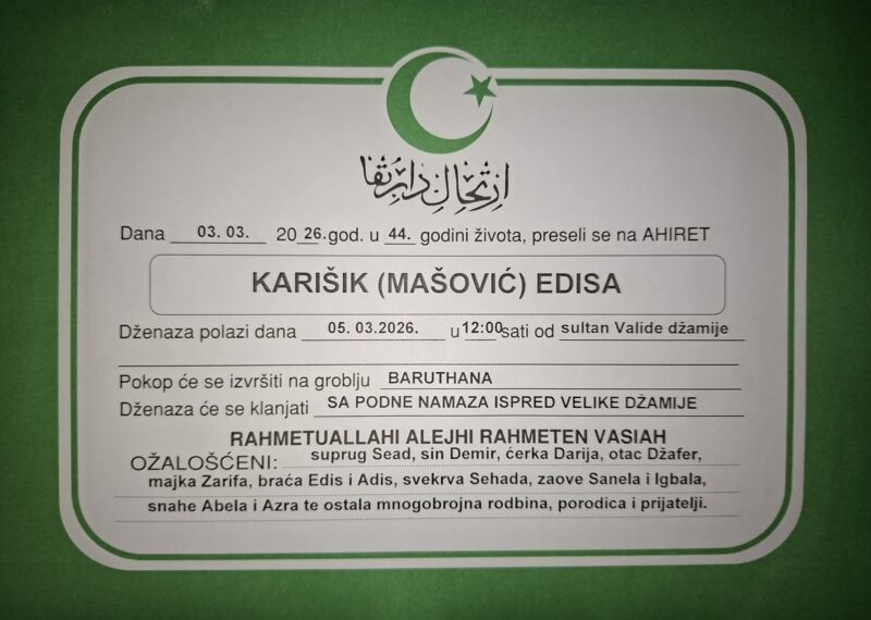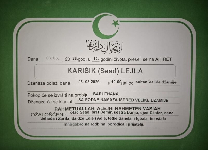 “Draga Edisa i mala Lejla, vaš odlazak ostavio je prazninu koju je nemoguće ispuniti. Neka vam Allah podari najljepše mjesto u Džennetu, a nama snagu da čuvamo uspomenu na vašu dobrotu i osmijehe.”