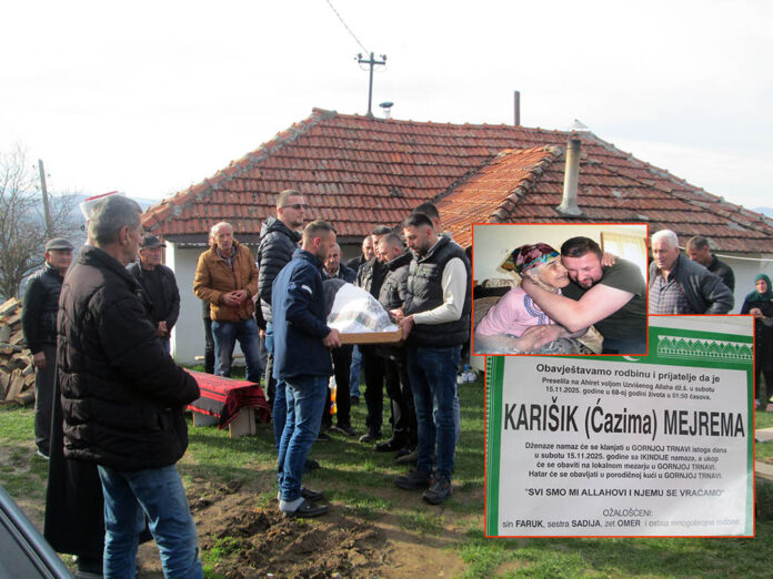 GORNJA TRNAVA / NOVI PAZAR – U subotu, 15. novembra 2025. godine, na mjesnom mezarju u Gornjoj Trnavi klanjana je dženaza i obavljen ukop Mejreme (Čazime) Karišik, žene čija je životna priča dirnula cijeli Sandžak i širu regiju. Preselila je na ahiret u 68. godini života, u ranim jutarnjim satima, a vijest o njenoj smrti ispunila je tugom sve koji su je poznavali ili su pratili njenu tešku, ali plemenitu životnu borbu.