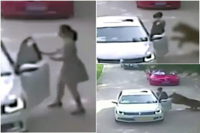 U kineskom safari parku Badaling Wildlife World u Pekingu, nadzorne kamere zabilježile su jeziv trenutak kada je tigar nasrnuo na posjetiteljku i odvukao je ispred očiju porodice.