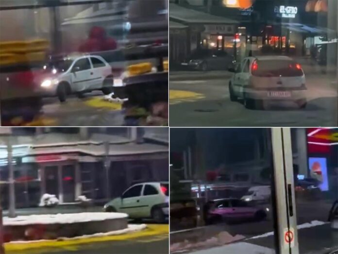 U kasnim večernjim satima na kružnom toku kod bolnica u Novi Pazar zabilježen je krajnje neodgovoran i opasan čin koji je zgrozio brojne građane. Kako se vidi na snimcima koje su nam poslali čitaoci, vozač manjeg putničkog automobila više puta je namjerno “kecajući” i proklizavajući po zaleđenom kolovozu izvodio driftove, kružeći konstantno oko kružnog toka – isključivo radi zabave.