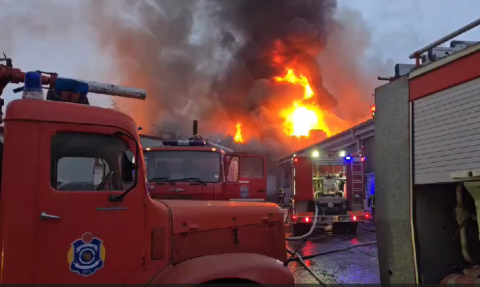 Novi Pazar – Vatrena stihija u industrijskoj zoni ne jenjava. Prema najnovijim informacijama s terena i posljednjem video snimku, požar je zahvatio novi magacin, u kojem su se nalazili materijali – štofovi za namještaj, izuzetno lako zapaljivi, zbog čega se vatra naglo rasplamsala. Kako javlja reporter s lica mjesta, požar se sada širi prema zadnjem magacinu, u pravcu gradske toplane, što dodatno podiže nivo opasnosti. Plamen se širi velikom brzinom, a gust dim i visoki plameni jezici otežavaju intervenciju i vidljivost.