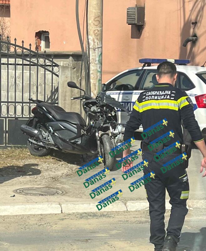 U saobraćajnoj nezgodi koja se dogodila danas oko 11:20 sati u ulici Kej skopskih žrtava u Novom Pazaru, na magistralnom putu kroz grad, došlo je do sudara motocikla i putničkog automobila marke Opel Zafira.