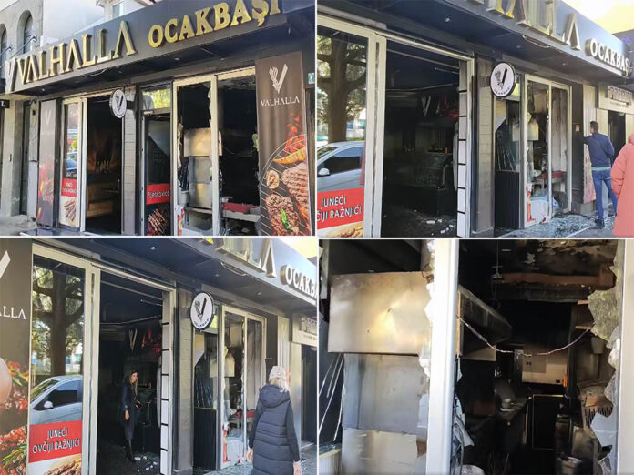 Video koji je objavila popularna Facebook stranica „Oči Podgorice“ prikazuje potresne scene s Bulevara Ivana Crnojevića — lokal u vlasništvu turskog državljanina potpuno je uništen. Izlozi su polupani, unutrašnjost zapaljena, a kuhinja i oprema sravnjeni sa zemljom. Ipak, ono što je javnost najviše dirnulo nije materijalna šteta, već ljudska reakcija vlasnika.