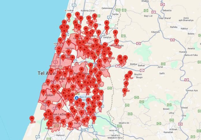 Satelitski prikazi pogođenih područja, koji se šire društvenim mrežama, pokazuju veliki broj aktiviranih sistema upozorenja na širokom prostoru od Herzlije na sjeveru do Ašdoda na jugu. Zračni prostor iznad Ben Gurion aerodroma bio je privremeno zatvoren, a više letova preusmjereno je ka Kipru i Jordanu.