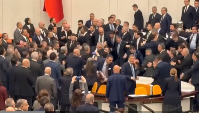 Neposredno prije početka svečane procedure, poslanici CHP-a formirali su svojevrsni “živi zid” ispred govornice, pokušavajući spriječiti Gürleka da položi zakletvu. Uslijedilo je guranje, razmjena teških riječi, a potom i fizički obračun između zastupnika vladajuće Stranka pravde i razvoja (AK Parti) i opozicije.