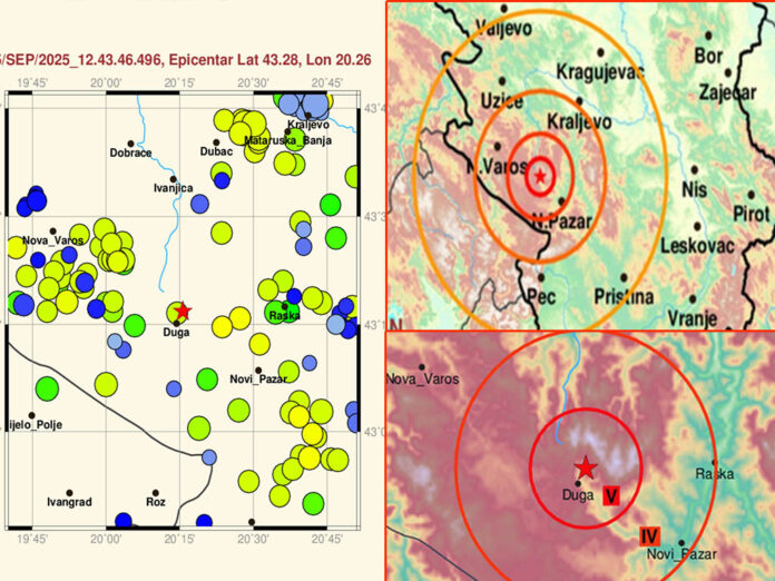 Sjenica – U nedelju, 5. septembra 2025. godine, oko 14:43 časa po lokalnom vremenu, registrovan je zemljotres jačine 4,2 stepena Rihterove skale u regionu Golije, oko 20 kilometara istočno od Sjenice. Epicentar potresa lociran je u blizini mjestа Duga Poljana (43.28°N, 20.26°E).